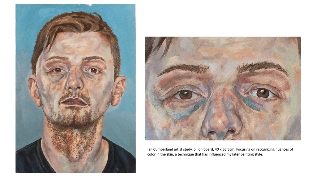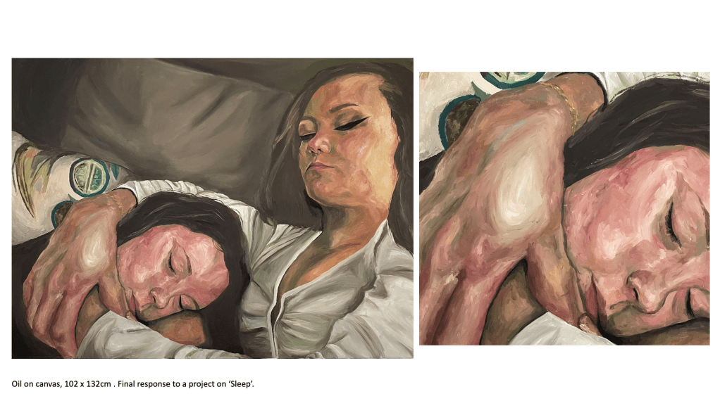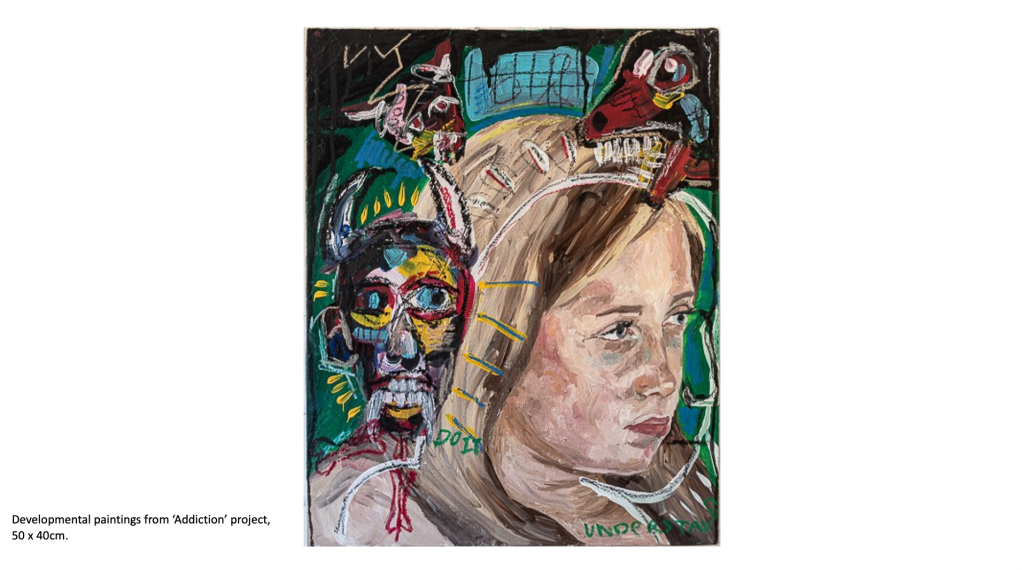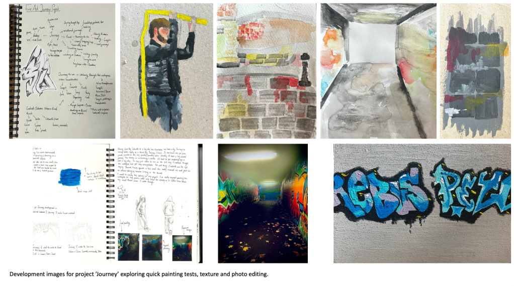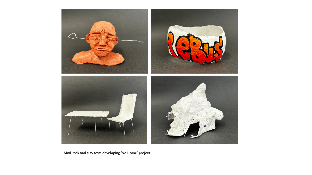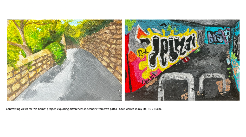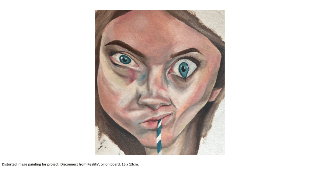 A predominant theme in my work is portraiture, as I’ve always been fascinated by the faces of those around me and how I can connect with the viewer by exposing emotions, thoughts and ideas through a subject’s face. I’ve looked at various themes and concepts throughout this body of work, but I tend to gravitate towards the figurative and psychological. From my previous projects on ‘Addiction and its Effect on the Mind’ to more current work exploring societal blindness towards the homeless population and related feelings of disconnect and disassociation from reality, my interest is in the nuance and implications of apparently simple images. My recent project created during my foundation course here at Manchester Metropolitan University took a critical stance and lead me to consider the issues surrounding homelessness, or more specifically the tendencies people have to ignore the issue entirely, stripping the individuals affected by homelessness of their dignity and humanity. The project encouraged me to use new methods and mediums such as ‘mod roc’ models and paper to create a series of silhouettes depicting homeless figures as a way to bring to life my impressions of the general population’s ignorance and insensibility.